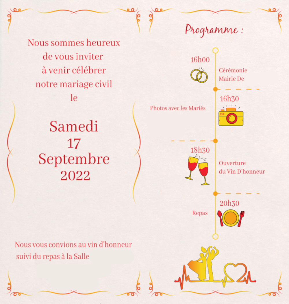 Support: carte d'invitation mariage - Dimension: 20x21cm